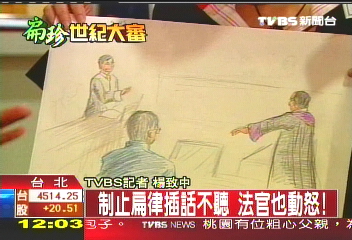 TVBS记者口述:“关于陈水扁的庭期里面,这一次应该是最火爆的一次,当时检察官他是站起来,他的双手指着陈水扁,昨天的身体状况我们也发现了,确实他是不太好,但是为什么律师要发言那么久,这个时候律师郑文龙把手举起来一直摇手说,没有啊、没有啊。”