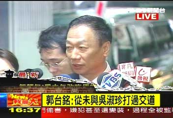 记者问:“关于吴淑珍陈报状所述,3000万的政治献金,是由您这边支付的吗?”郭台铭说:“我回答,没有。”记者再问:“没有捐款给扁家3000万吗?”郭台铭重申:“没有。”记者接着问:“那怎么会传出这样的说法?”郭台铭面露无奈地说:“我也不晓得。”
