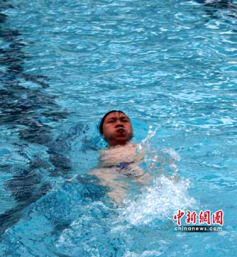 中新网荆门6月30日电(吴奇勇 潘小龙)记者今日在湖北荆门市体育中学游泳馆看见,数名残疾人运动员正在泳池里刻苦训练,2004、2008两届残疾人奥运会冠军何军权也赫然在内。