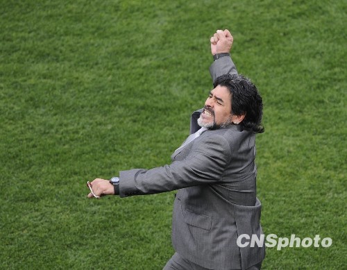 自从2008年挂帅阿根廷国家队,到球队兵败南非0-4惨遭德国队血洗,站在场边的马拉多纳始终是国际足坛最吸引人眼光的人物,而阿根廷队从跌跌撞撞杀入世界杯,到小组赛阶段的顺风顺水,到1/4决赛崩盘般惨败,再到队内隐藏的种种矛盾浮出水面……马拉多纳就像一个近乎癫狂的乐队指挥,在他的指挥棒下流出的乐声或慷慨激昂或凄惨哀婉,在提前到来的高潮之后最终归于沉寂,从这个角度来说,马拉多纳无愧“最佳导演”这一称号。