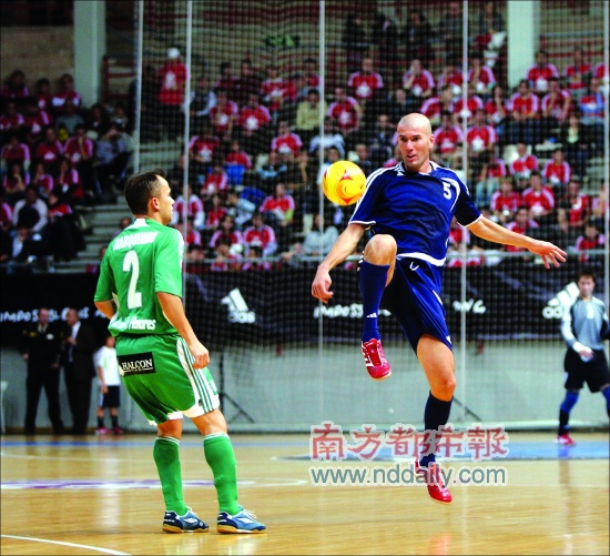 皇马在国王杯中出局的同一天,齐达内也在马德里打了一个比赛,不过他只是参加了一场室内慈善赛,与耶罗及卡尼萨雷斯等人在木地板上大秀脚法。