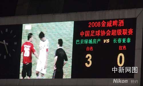 浙江巴贝绿城3比0战胜长春亚泰,获得首个主场胜利。