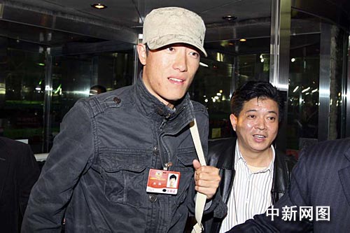 3月10日晚9时20分左右,中国田径运动员刘翔以全国政协委员的身份飞抵北京,参加正在举行的全国政协会议。 中新社发 富田 摄