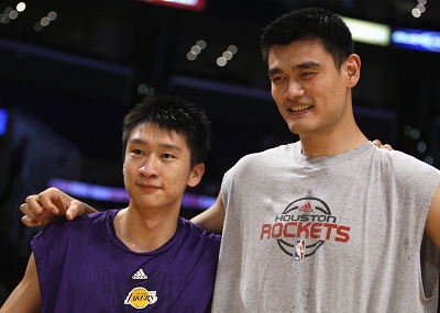 与湖人的比赛,中国记者挤满了斯台普斯球馆的记者专区,大家都想见证新赛季姚明和孙悦领衔的第一场中国德比。“希望他能上场,我想和他在NBA赛场上拼一下。以前看到孙悦的时候,他总是穿着国家队的队服,现在看他穿上湖人队服,我会有一些不适应。”姚明笑着说道。不过“禅师”杰克逊没有替姚明达成心愿,孙悦继续“把板凳坐穿”,“中国德比”再次成空。