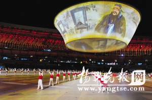 在预演现场,宏大的声势和“道具”令人震撼。就像北京奥运会开幕式用极具中国特色的画卷作为核心道具展示古老神秘的东方文化,本次全运会上有一个特别作品,那就是一个巨型的碗状帷幕。在晚间预演中,这个直径大约有50米的“巨碗”从地面上缓缓升起,悬空而置。形成了一个类似巨型背投的装置。随着地面上节目的不断变化,投射在“碗”幕上的影像也会不断变换,制造强烈的视觉冲击。