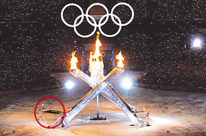 当火炬传到最后一名火炬手格雷茨基手中时,他站在场地中央,安静等待开幕式刚开始时的四根欢迎柱缓缓升起,不过,经历了几分钟的漫长等待,最终升上来的,是三根欢迎柱。
