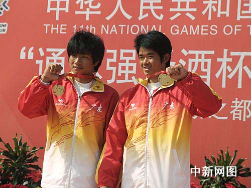 根据皮划艇激流回旋比赛规则,冠军的产生由半决赛和决赛两次的成绩累加而得。广东队胡明海/舒俊榕是今年全国皮划艇激流回旋锦标赛男子双人划艇的冠军。在男子单人划艇比赛中,他们在半决赛中就以较大优势夺得头名,一举奠定优势。在随后决赛中,他们发挥正常,轻松将金牌收入囊中。