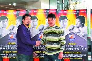 日前,柳海龙国际搏击争霸赛的两位领衔主打柳海龙与伊贺弘治同时来到佛山。为参加1月10日的“海弘大战”进行赛前最后的准备。两位选手在赛事主办方的安排下,进行了初次见面。