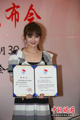张娜拉展示聘书