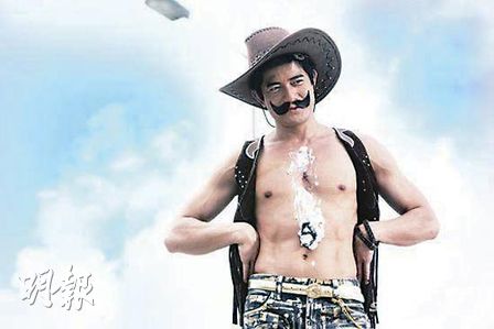 中新网7月21日电 郭富城在电影《全城戒备》中造型多样,早前有肥版变种人与小丑造型曝光,今日曝光的造型中他又变身搞笑西部牛仔;露两点晒腹肌,认真好笑。