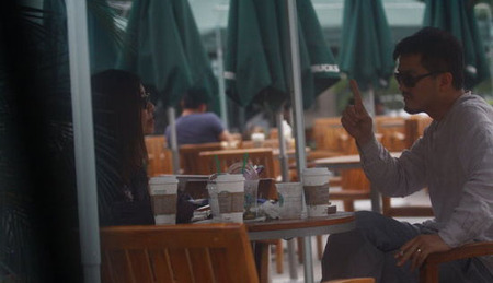 近日,记者在丽都广场星巴克店巧遇李亚鹏,他正与一位长发女子开心畅谈,当日身穿浅灰色衬衫的李亚鹏倍显低调,唯独脸上蓄起的胡须为其更添男人硬朗英气。只见李亚鹏不时挥动手臂,用丰富的肢体语言表达自己的意思,稍后更点燃一支香烟,碰巧露出左手无名指的卡地亚素圈婚戒十分耀眼,似无时不刻不在宣告他与王菲婚姻的甜蜜。