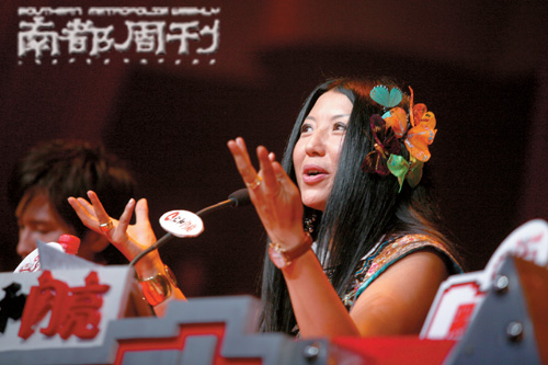 得罪了郑钧、气跑了谢娜、亲吻了黑楠、骚扰了“快男”……如果真如杨二车娜姆所言,这是“仙女”的举动,那么杨老师一定是史上最强悍仙女。“快男”11进9,她没有戴花,但依然“花痴”,说吉杰“是上天专门派来给女人唱歌的男人”,而在当天下午彩排现场,她说的是“吉杰你露出红色内裤的边,好性感!”主持人汪涵赶紧说,让杨老师点评是一个错误的选择。