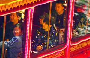 记者想询问这条船上一个座位多少钱,“聚宝号”导游戴小姐却告诉记者:“这条船一般不租,只有领导才能坐。”当夜,这条船上还有秦淮区政府的几名领导,但因为杰伦来了,船上一切似乎都是为杰伦所设。原本船内的卡拉OK放着古朴的音乐,大家要导游换成了周杰伦的《千里之外》,全都听得津津有味。