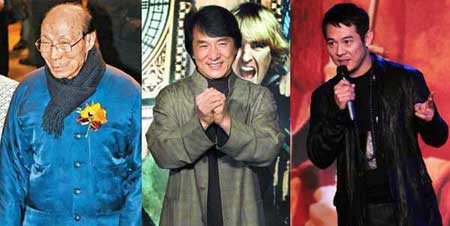 邵逸夫、成龙、李连杰。(左起)