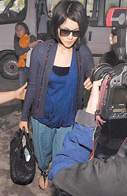 王菲在机场被拍脸色也不好看。