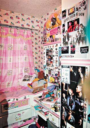 猝死少女的睡房贴有大量韩国组合SJ-M相片及饰物。