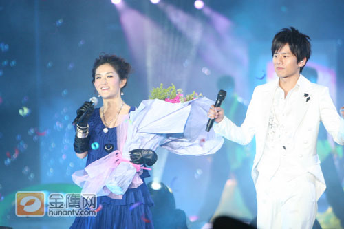湖南卫视12月31日的跨年演唱会上,经过主持人何炅的一番调侃之后,备受期待的张杰和谢娜的对唱《明天过后》终于登场了,张杰一身白色西服登场,颇有白马王子的风范,而一向敢说敢做的谢娜在张杰的身边则显得小鸟依人,当张杰主动拉起她的手时,更是羞得满脸通红。一首《明天过后》被张杰和谢娜唱得柔情蜜意,尤其是四目相对时,更是闪现着无数的火花,被主持人何炅调侃像一个婚礼一样。