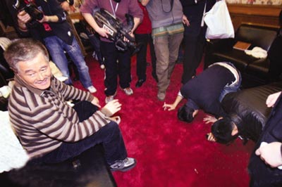 1月28日,北京,央视春节联欢晚会在1月25日除夕夜举行。零点钟声敲响后,与师傅成功搭档表演小品《不差钱》的小沈阳和众徒弟按照东北习惯,跪地给师傅赵本山磕头拜年。