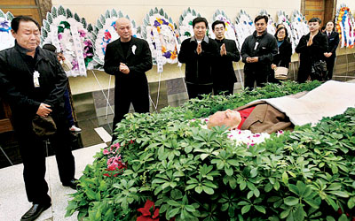 由于前来祭奠的群众和媒体太多,告别厅门口一度被堵了个水泄不通。