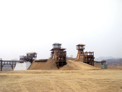 从去年8月开始,拍摄所需的战舰、营地、攻城战车、战壕、补给装备等就已经开始建造,至今已经基本完成。作为主要场景的曹操营寨,目前也已搭建完成,主要为固定的木质建筑。在易水湖边可以看到整体情况,两座十几米高的瞭望塔楼,后方还有烽火高台,继续向后是用土垫起的平台,正中央是帅台,前面有两座掩体般的楼状工事。另外片中数十位有名有姓的出场人物所需的几百套战甲、官服和便衣也已经手工缝制完成。