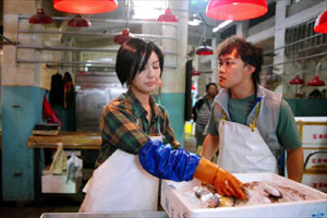 既然在戏里演卖鱼妹,杨千嬅难免要“大开杀戒”,据说杀了上百条鱼?杨千嬅笑说:“我们虽然‘杀’了很多鱼,多数是鱼市场卖不出的鱼,所以不会太残忍。可是,有一次我要杀一条跳动的鳗鱼,吓得要死,我家是拜佛的,不可以杀生,结果请导演先把鱼打晕,而且不可以NG,否则又要再杀另一条。”