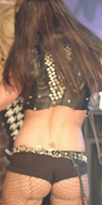 当晚,Britney玩得兴起,到后台探望驻场的性感舞蹈员,后来Britney穿上他们表演的T-back,摆出一副自得其乐的表情,与一名黑人男舞蹈员露臀合照,感觉俗不可耐。