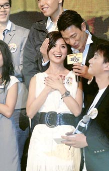 中新网8月6日电 据香港明报报道,刘德华前晚除了在“国语力颁奖礼”连扫6奖成为大赢家外,还左右逢源,周旋于港、台人气女歌手蔡卓妍及S.H.E成员Ella之间,一个含羞答答头贴头,一个奔放胸贴胸,艳福无边。