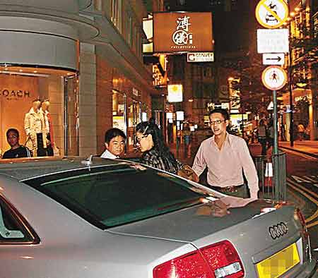前晚11时左右,记者发现许晋亨的Audi房车停泊在铜锣湾恩平道一带,过会,许晋亨便挽爱人嘉欣出现,看来二人应该是约会完毕,饮饱食醉后准备离开闹市。