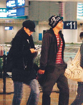 虽然发现了记者,有些吃惊,但夏雨和袁泉并没有躲闪,从头到尾都是手拉着手,除了搬行李外,根本就没分开过,就连袁泉发手机信息时,都是左手拉着夏雨,右手发着信息。随后二人被前来接机的车子接走,记者没有再继续跟踪。