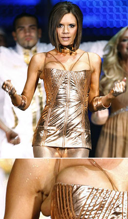 33岁的维多利亚穿上Roberto Cavalli金色紧身装非常抢眼,可是也因为太紧,在托高胸部时,右边腋下竟惊现离奇赘肉。之前据传,维多利亚在此次巡回演唱会前,因为怕胸部太大可能不慎就春光外泄、影响表演,所以特别将胸部填充物取出。不过也有消息称,维多利亚再度有喜,害怕隆胸填充物对胎儿有害,才将其取掉。