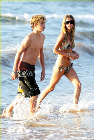 帕里斯24岁的妹妹尼基和13岁的弟弟康拉德在夏威夷的海边嬉戏。