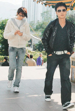 蔡少芬和张晋在香港沙田新居门口被狗仔抓个正着。