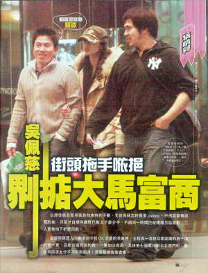 本月4日晚,吴佩慈在台北世贸为车展彩排后,先与弟弟及年约30岁的“翻版霍启刚”男友步行到“101”大楼里的餐厅用餐,直到晚上9时许才返回酒店停车场取车。在吴佩慈不熟练的驾驶技术下,原本只需十五分钟便到达西门町的车程,足足花了四十分钟。吴佩慈吩咐胞弟充当“泊车仔”后,便与男友十指紧扣到西门町内的“阿宗面线”吃饭。举动亲密的二人,边吃面边谈心,相当温馨。其后,吴佩慈又再与“翻版霍启刚”到中华路的钱柜卡拉OK,此时男方终于忍不住伸手搂住吴佩慈的小蛮腰,女方对男友突如其来的举动毫不抗拒,更报以甜笑回应。唱K至凌晨1时多,三人才离开,一脸依依不舍的吴佩慈,此时紧紧挽着“翻版霍启刚”的手臂,直至要开车送男友返回酒店,才肯放手。
