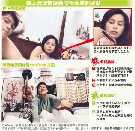 另外,有不少网民在讨论区留言,讨论床照的真伪,不少Photoshop高手更以他们的专业知识分析,有人表示整张相片上俗称“彩虹斑”的噪声很平均,即使调光了仍看不出破绽,若是合成照,制作照片的人需要极高技巧。
