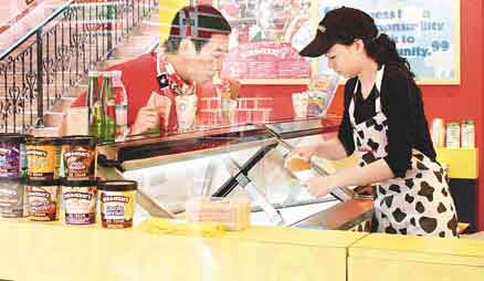 陈小春与长腿辣妹店员搭讪。香港东方日报图。