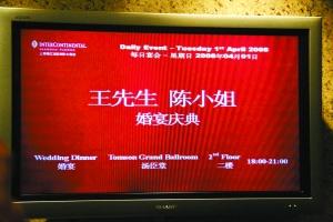 酒店的显示屏指示亲友如何到达婚宴地点。