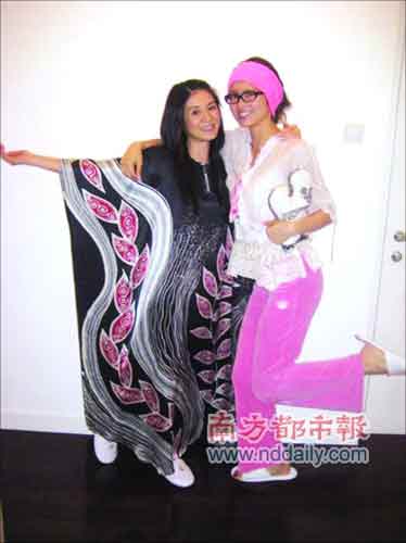 穿睡衣的GiGi(右)与杨采妮。