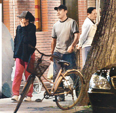 发现记者后,吴大维女伴即掩面躲避。香港东方日报图。