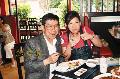 因为要减肥,欣宜(右)对眼前美食只好忍口。