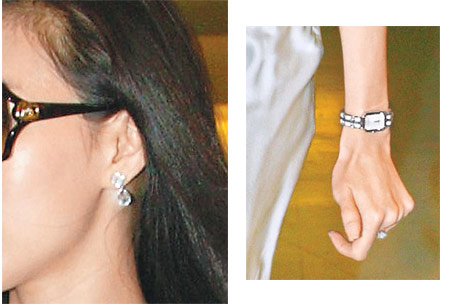 据台湾媒体报道,曾馨莹左手无名指戴大钻戒,珠宝专家目测约10克拉,价值超过6000万元,而她左手腕戴的双排钻炼表,估计约1700万元,手提约19万200元的爱马仕“Lindy”包。外传她赴港是为采买婚礼礼品。双排钻炼表、钻戒和钻石耳环,估计价值逾7700万元。