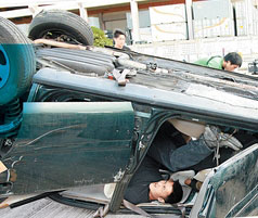 中新网7月6日电 谢霆锋5日拍摄林超贤导演新片《证人》时,除了一场撞车戏外,还要在翻转了的车厢内倒挂拍摄。卖命演出的他,不但没有叫苦,更笑言这套戏已算小儿科。至于公司会否开戏给他与钟欣桐合作,霆锋称未落实的事他不会听。