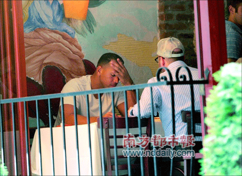 7月7日,阿里克斯和朋友吃饭,满面愁容。
