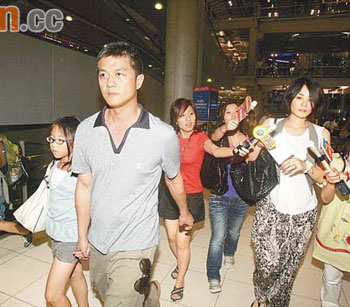 当地时间昨日下午5点左右,本报记者一行二人抵达泰国曼谷。曼谷是中国内地和香港通向神秘国度不丹仅有的两条途径之一(另一条途径是印度),几乎所有参加这场婚礼的宾客都将从曼谷取道,前往不丹,因此,曼谷SU-VARNABHUMI国际机场成为媒体聚集之地。从下午5点一刻左右,直到晚上7点半,一共有三个来自香港的航班降落在曼谷国际机场。约有10名来自香港电视台、杂志和报纸的记者,守候在机场的国际出口,希望能拍到哪怕是一个参加婚礼的嘉宾。一位香港无线电视台的记者告诉本报记者,今天一整天,他们只拍到了施南生一人。而之前,在这里“守株待兔”的香港媒体已经拍到了林青霞等贵客,而梁朝伟和刘嘉玲两口子也被收入镜头。