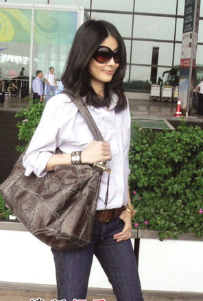 陈慧琳一直很会打扮,连赶飞机也打扮得很有气质。黑墨镜、衬衣、牛仔裤,简单的几件单品经她搭配过后,穿在身上即显得星味十足。