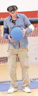 刘德华戴上不透视的眼镜体验盲人女子门球。图片均来自香港《明报》。