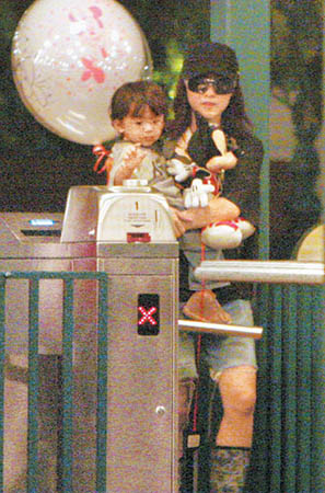 张柏芝母子夜游迪斯尼 大腿粗壮身形明显发福(图)