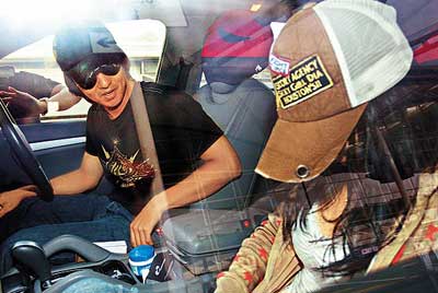 由于徐若瑄赶上机,冯德伦也大力踩油直驶机场,至机场的客区时,女助手先下车前往柜位办理手续,此时记者趋前拍照,徐若瑄吓得马上低头以帽遮面及狂打电话,同样戴cap帽、戴墨镜的冯德伦表情尴尬,勉强挤出一丝笑容,他见徐若瑄身子不停下滑,穿的小背心领口松开,惟恐她走光即示意整理衣服,她即马上拉紧外套。