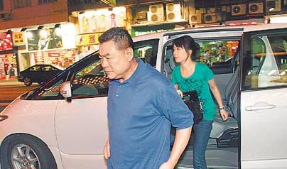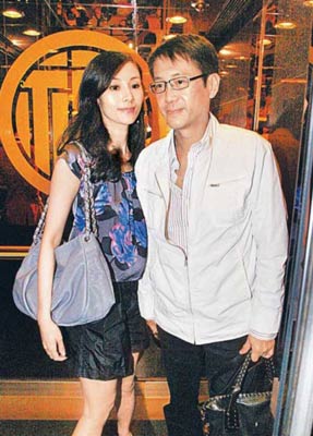 香港富商刘銮雄(左)和女友一同到香港酒楼吃饭。