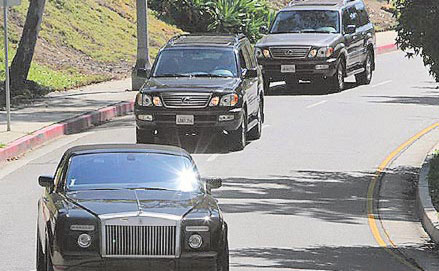 贝克汉也爱搞大阵仗,最近他去学校接孩子,竟然开着价值约1741万元新台币的劳斯莱斯,后头还跟了2车的保镖,阵容浩大。看来他举家搬来洛杉矶1年多,已渐渐融入当地的奢华作风。