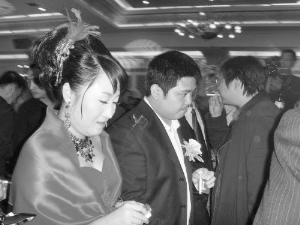 前日10时28分,赵本山的女儿赵玉芳及女婿汪洋在酒店6楼的宴会厅举行婚礼,现场布满紫色花朵,尽显典雅。而在婚礼正式开始前的一个多小时里,赵本山的众位弟子纷纷登场,在酒店门外表演了唢呐演奏和小品等节目助兴。